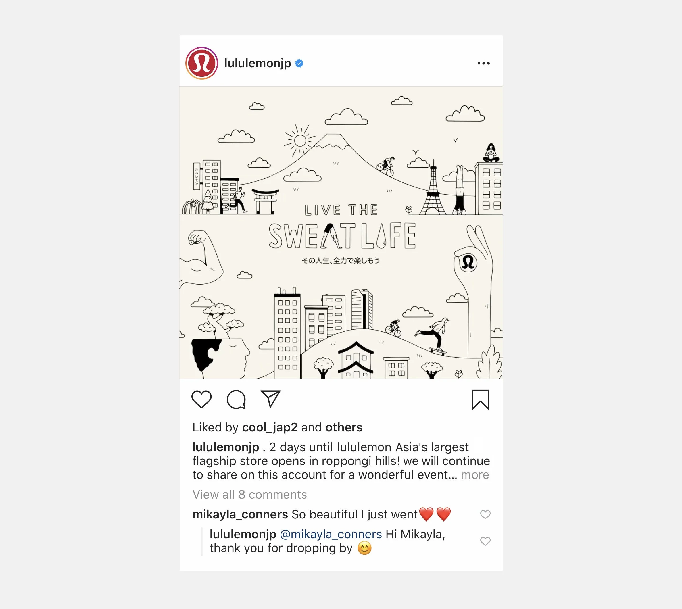 Lululemon was opening its flagship store in Roppongi, Tokyo. They wanted to create illustrations that would connect the idea of Living The Sweat Life with iconic Tokyo landmarks. I developed a store mural, blending the geography with key yoga, fitness, and mindfulness visuals, as well as a series of conceptual illustrations and animations for social.